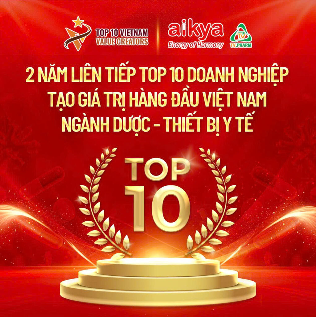 Aikya would like to congratulate TV.PHARM on continuing to be honored in the Top 10 Value-Creating Enterprises in Vietnam 2025 (in the field of Pharmaceuticals – Medical Equipment), organized by Investment Newspaper and Viet Research.